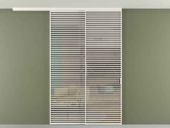 Перегородка Формато вдоль стены на потолок 2 створки с синхронным механизмом