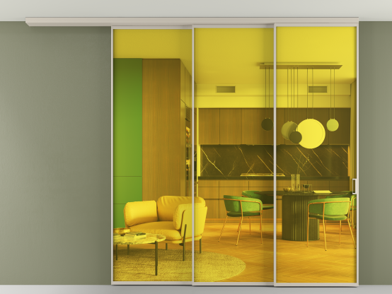 АЛПР 040.01. Алюминий светло-бежевый Прозрачное жёлтое стекло, триплекс, 6мм