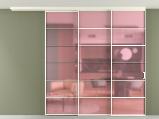 Перегородка Formato вдоль стены на потолок 3 створки с синхронным механизмом