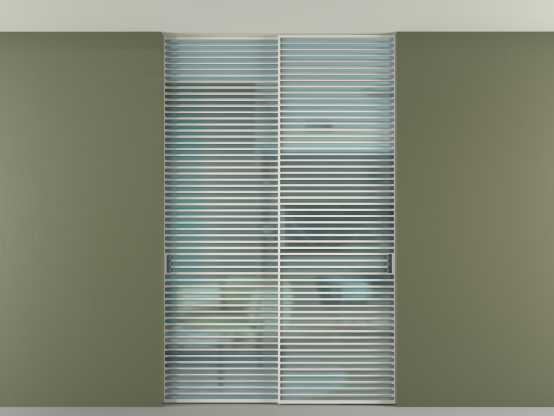 Во всех алюминиевых перегородках, независимо от типа установки, используется компланарный раздвижной механизм, благодаря которому декоративная крышка и полотно находятся в одной плоскости.