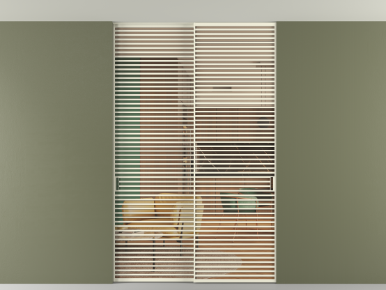 Во всех алюминиевых перегородках, независимо от типа установки, используется компланарный раздвижной механизм, благодаря которому декоративная крышка и полотно находятся в одной плоскости.