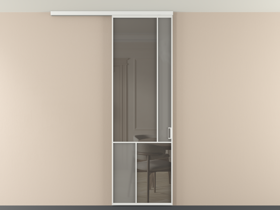 Во всех алюминиевых перегородках, независимо от типа установки, используется компланарный раздвижной механизм, благодаря которому декоративная крышка и полотно находятся в одной плоскости.