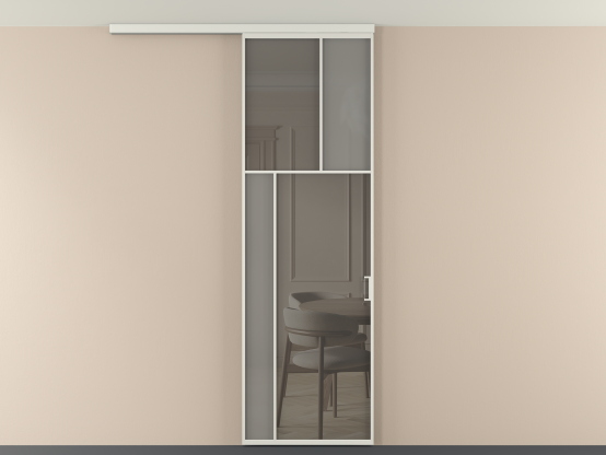 Во всех алюминиевых перегородках, независимо от типа установки, используется компланарный раздвижной механизм, благодаря которому декоративная крышка и полотно находятся в одной плоскости.