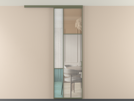 Во всех алюминиевых перегородках, независимо от типа установки, используется компланарный раздвижной механизм, благодаря которому декоративная крышка и полотно находятся в одной плоскости.