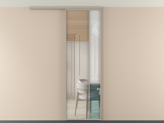 Во всех алюминиевых перегородках, независимо от типа установки, используется компланарный раздвижной механизм, благодаря которому декоративная крышка и полотно находятся в одной плоскости.