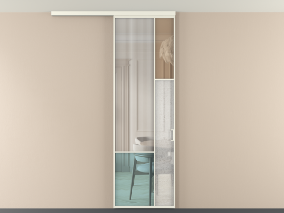 Во всех алюминиевых перегородках, независимо от типа установки, используется компланарный раздвижной механизм, благодаря которому декоративная крышка и полотно находятся в одной плоскости.