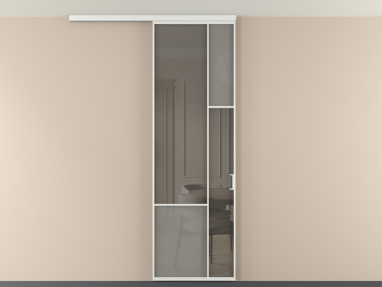 Во всех алюминиевых перегородках, независимо от типа установки, используется компланарный раздвижной механизм, благодаря которому декоративная крышка и полотно находятся в одной плоскости.
