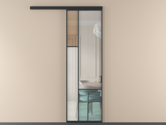 Во всех алюминиевых перегородках, независимо от типа установки, используется компланарный раздвижной механизм, благодаря которому декоративная крышка и полотно находятся в одной плоскости.