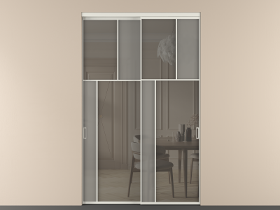 Дополнительно на раздвижную двустворчатую перегородку вдоль стены и четырехстворчатую перегородку внутри проема с двумя неподвижным полотнами можно установить механизм синхронного открывания — при открывании одной створки, вторая открывается автоматически.