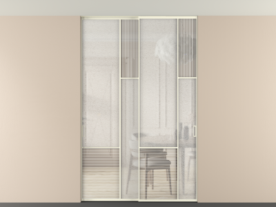 Дополнительно на раздвижную двустворчатую перегородку вдоль стены и четырехстворчатую перегородку внутри проема с двумя неподвижным полотнами можно установить механизм синхронного открывания — при открывании одной створки, вторая открывается автоматически.