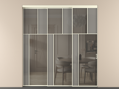 Перегородка Мозаик внутри проёма 3 створки с синхронным механизмом