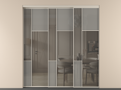 Перегородка Мозаик внутри проёма 3 створки с синхронным механизмом