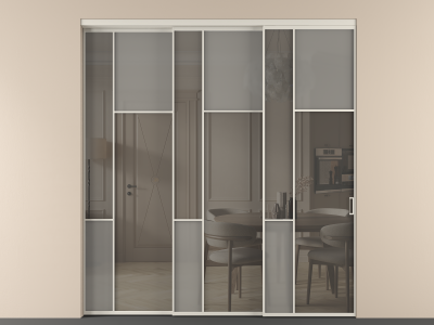 Перегородка Мозаик внутри проёма 3 створки с синхронным механизмом