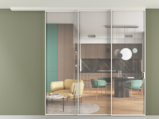Перегородка Formato вдоль стены на потолок 3 створки с синхронным механизмом