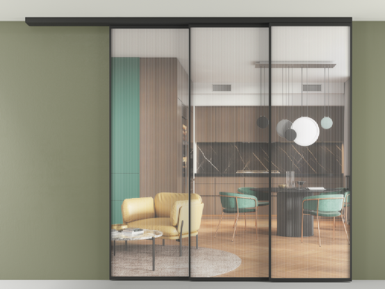 Перегородка Формато вдоль стены на потолок 3 створки с синхронным механизмом