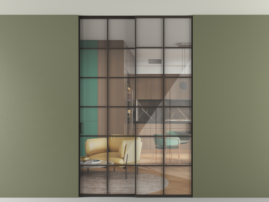 Алюминиевые перегородки имеют единый профиль с алюминиевыми дверьми и легко сочетаются в одном пространстве, не перегружая его. Также их можно комбинировать в интерьере с полотнами из нашего стандартного ассортимента. Помимо этого, система алюминиевых перегородок и дверей координируется со стеновыми панелями Волховец.