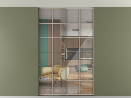Алюминиевые перегородки имеют единый профиль с алюминиевыми дверьми и легко сочетаются в одном пространстве, не перегружая его. Также их можно комбинировать в интерьере с полотнами из нашего стандартного ассортимента. Помимо этого, система алюминиевых перегородок и дверей координируется со стеновыми панелями Волховец.