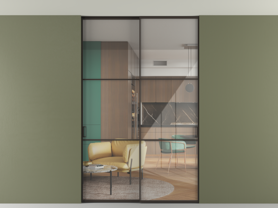 Алюминиевые перегородки имеют единый профиль с алюминиевыми дверьми и легко сочетаются в одном пространстве, не перегружая его. Также их можно комбинировать в интерьере с полотнами из нашего стандартного ассортимента. Помимо этого, система алюминиевых перегородок и дверей координируется со стеновыми панелями Волховец.