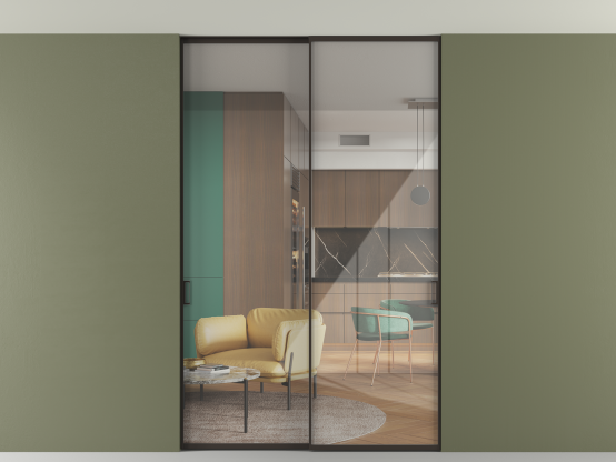 Алюминиевые перегородки имеют единый профиль с алюминиевыми дверьми и легко сочетаются в одном пространстве, не перегружая его. Также их можно комбинировать в интерьере с полотнами из нашего стандартного ассортимента. Помимо этого, система алюминиевых перегородок и дверей координируется со стеновыми панелями Волховец.