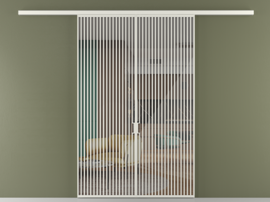 Во всех алюминиевых перегородках, независимо от типа установки, используется компланарный раздвижной механизм, благодаря которому декоративная крышка и полотно находятся в одной плоскости.