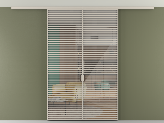 Во всех алюминиевых перегородках, независимо от типа установки, используется компланарный раздвижной механизм, благодаря которому декоративная крышка и полотно находятся в одной плоскости.