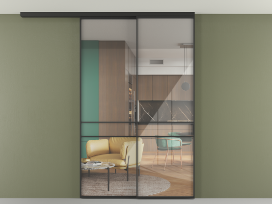 Алюминиевые перегородки имеют единый профиль с алюминиевыми дверьми и легко сочетаются в одном пространстве, не перегружая его. Также их можно комбинировать в интерьере с полотнами из нашего стандартного ассортимента. Помимо этого, система алюминиевых перегородок и дверей координируется со стеновыми панелями Волховец.