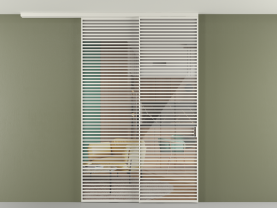 Перегородка Формато вдоль стены на потолок 2 створки с синхронным механизмом