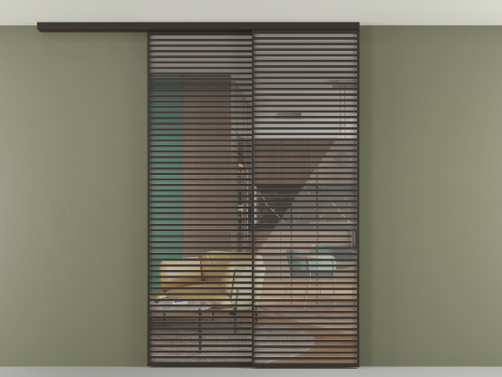 Во всех алюминиевых перегородках, независимо от типа установки, используется компланарный раздвижной механизм, благодаря которому декоративная крышка и полотно находятся в одной плоскости.