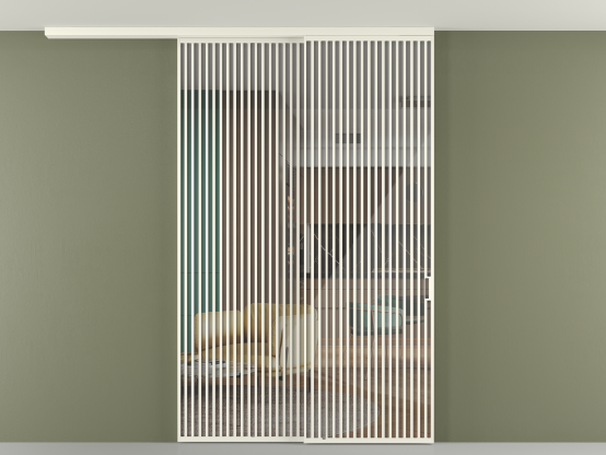 Перегородка Формато вдоль стены на потолок 2 створки с синхронным механизмом