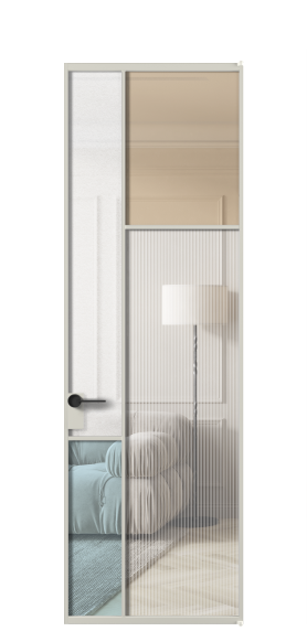 Лаконичный разделительный профиль внутренней раскладки полотна обеспечивает эстетический внешний вид конструкции и идеальную стыковку вставок из стекла.