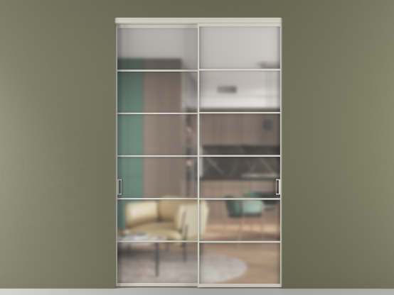 Во всех алюминиевых перегородках, независимо от типа установки, используется компланарный раздвижной механизм, благодаря которому декоративная крышка и полотно находятся в одной плоскости.