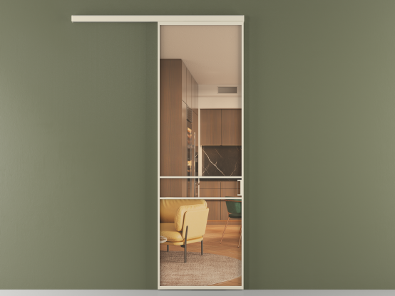 Во всех алюминиевых перегородках, независимо от типа установки, используется компланарный раздвижной механизм, благодаря которому декоративная крышка и полотно находятся в одной плоскости.