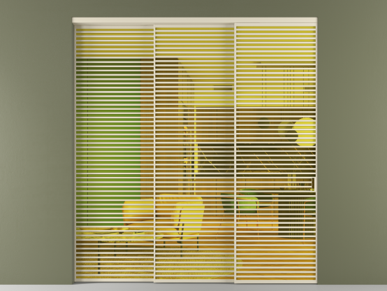 Во всех алюминиевых перегородках, независимо от типа установки, используется компланарный раздвижной механизм, благодаря которому декоративная крышка и полотно находятся в одной плоскости.