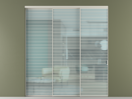 Во всех алюминиевых перегородках, независимо от типа установки, используется компланарный раздвижной механизм, благодаря которому декоративная крышка и полотно находятся в одной плоскости.