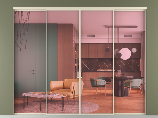 АЛПР 040.01. Алюминий бежево-серый Прозрачное розовое стекло, триплекс, 6мм
