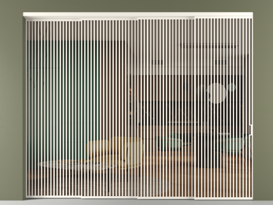 Во всех алюминиевых перегородках, независимо от типа установки, используется компланарный раздвижной механизм, благодаря которому декоративная крышка и полотно находятся в одной плоскости.