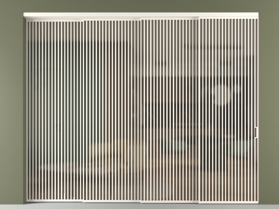 Во всех алюминиевых перегородках, независимо от типа установки, используется компланарный раздвижной механизм, благодаря которому декоративная крышка и полотно находятся в одной плоскости.