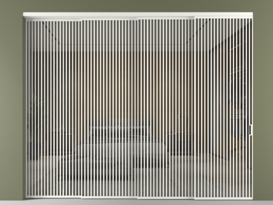 Во всех алюминиевых перегородках, независимо от типа установки, используется компланарный раздвижной механизм, благодаря которому декоративная крышка и полотно находятся в одной плоскости.