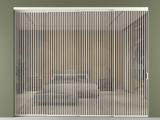 Во всех алюминиевых перегородках, независимо от типа установки, используется компланарный раздвижной механизм, благодаря которому декоративная крышка и полотно находятся в одной плоскости.