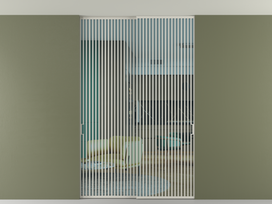 Дополнительно на раздвижную двустворчатую перегородку вдоль стены и четырёхстворчатую перегородку внутри проёма с двумя неподвижным полотнами можно установить механизм синхронного открывания — при открывании одной створки, вторая открывается автоматически.