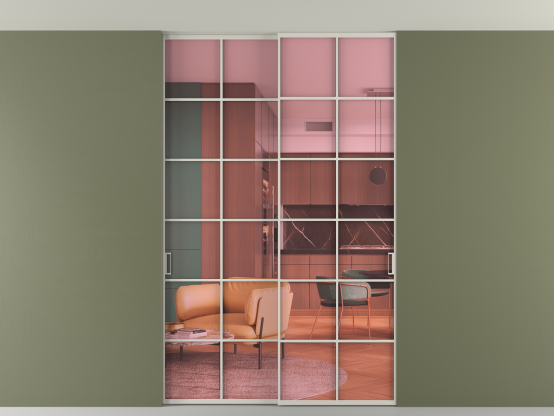 Алюминиевые перегородки имеют единый профиль с алюминиевыми дверьми и легко сочетаются в одном пространстве, не перегружая его. Также их можно комбинировать в интерьере с полотнами из нашего стандартного ассортимента. Помимо этого, система алюминиевых перегородок и дверей координируется со стеновыми панелями Волховец.