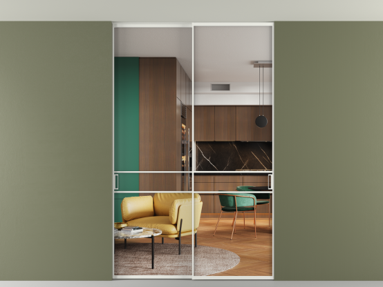 Перегородка Formato внутри проёма скрытое крепление в потолок 2 створки