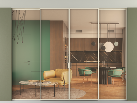 Алюминиевые перегородки Formato — это стильное и функциональное решение для современных интерьеров, предназначенное для разделения и зонирования пространства внутри одного помещения. Перегородки изготавливаются под индивидуальные размеры с шагом в 1 мм, что даёт возможность подобрать оптимальное соотношение размеров и количества створок, в том числе и для нестандартных проёмов.
