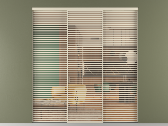 Во всех алюминиевых перегородках, независимо от типа установки, используется компланарный раздвижной механизм, благодаря которому декоративная крышка и полотно находятся в одной плоскости.