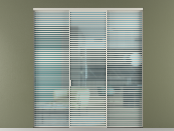Во всех алюминиевых перегородках, независимо от типа установки, используется компланарный раздвижной механизм, благодаря которому декоративная крышка и полотно находятся в одной плоскости.