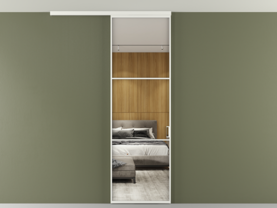 Во всех алюминиевых перегородках, независимо от типа установки, используется компланарный раздвижной механизм, благодаря которому декоративная крышка и полотно находятся в одной плоскости.