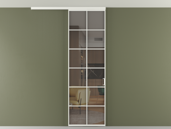 Во всех алюминиевых перегородках, независимо от типа установки, используется компланарный раздвижной механизм, благодаря которому декоративная крышка и полотно находятся в одной плоскости.