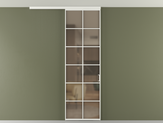 Во всех алюминиевых перегородках, независимо от типа установки, используется компланарный раздвижной механизм, благодаря которому декоративная крышка и полотно находятся в одной плоскости.