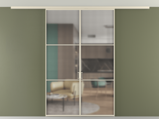 Дополнительно на раздвижную двустворчатую перегородку вдоль стены и четырёхстворчатую перегородку внутри проёма с двумя неподвижным полотнами можно установить механизм синхронного открывания — при открывании одной створки, вторая открывается автоматически.