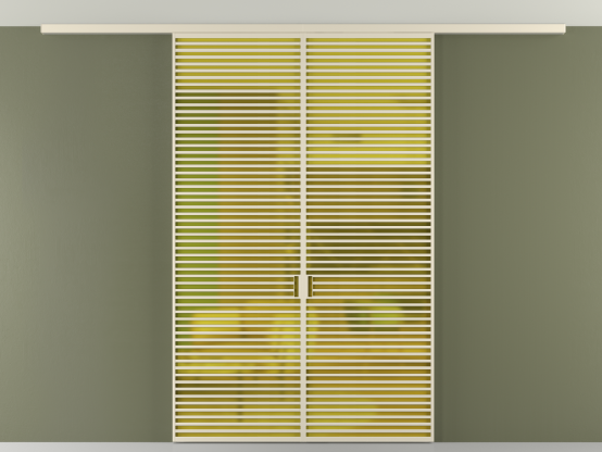 Дополнительно на раздвижную двустворчатую перегородку вдоль стены и четырёхстворчатую перегородку внутри проёма с двумя неподвижным полотнами можно установить механизм синхронного открывания — при открывании одной створки, вторая открывается автоматически.